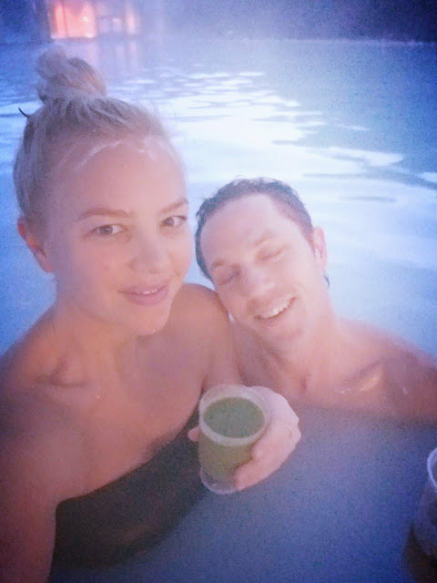 Again, we managed to have lucked out in the busy-ness department because it didn't seem nearly as packed as I'd read it could be. We got our wristbands, showered and met at the entrance to the pools, got our mud masks, drinks, and relaxed under the night sky. Having not eaten all day, I opted for a green smoothie with mango and ginger (it tasted like sushi if I'm being honest) and Brian got a beer. We sat in the wet sauna and just soaked our old weary bones. It was a really cool place, and I'm glad we went...there have been worse birthdays, I'm sure :)