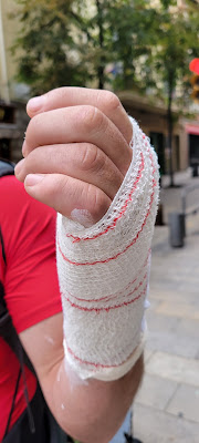 We decided to head to the Picasso Museum, which included a few busses and a couple of stops on the Subway. On the way down the marble steps to the Subway, Brian slipped and landed on his left wrist, and broke it. Just then, our plans changed and we ended up trying to find the nearest hospital. A few hours later, he was in a cast and we were in an Uber making our way to the airport motel that I'd booked. We at KFC in bed and called it a night early before flying out early the next morning.
