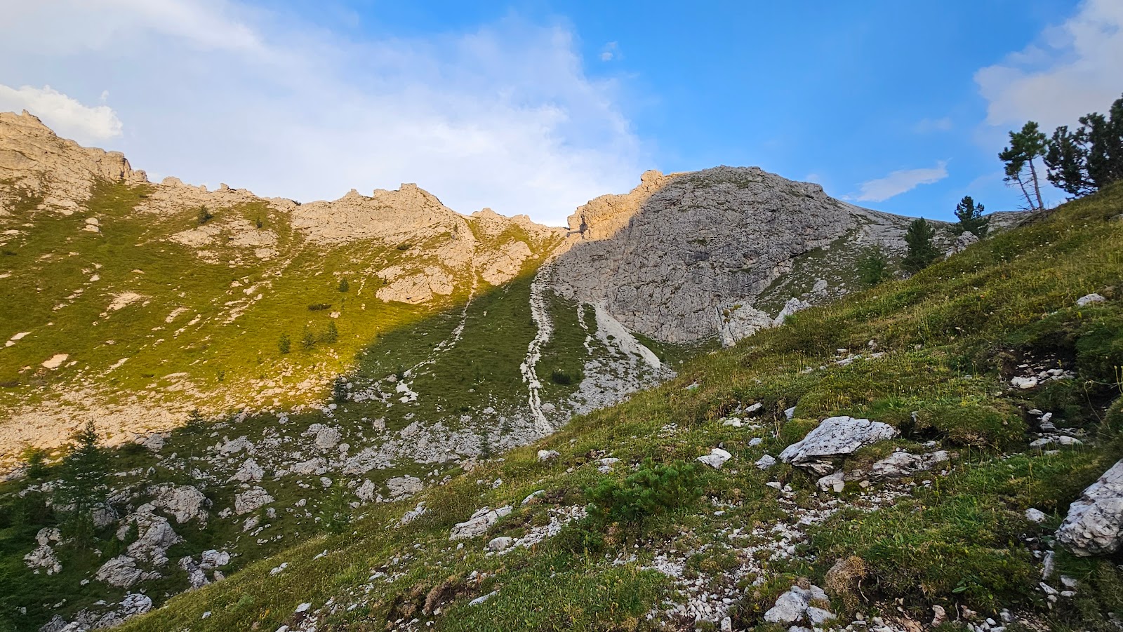 I was through the gate and in a parking spot by 8:30 that morning, and it was already about 85 degrees. The trail started out pretty level and was nice and wide so I covered ground quite quickly. However, I found a bunch of side trails that caught my curiosity, so I ended up doubling my mileage just exploring. One thing about this particular mountain is just the sheer scale of everything...photos just don't do it justice. Tre Cime is particularly famous because it's so identifiable and you can see it looming over valleys from many other places in the area. The 3 peaks are absolutely massive and every trail takes 5 times longer to complete than you'd think just by looking at it. Every turn just took my breath away...I was so happy to have been there and experienced it.
